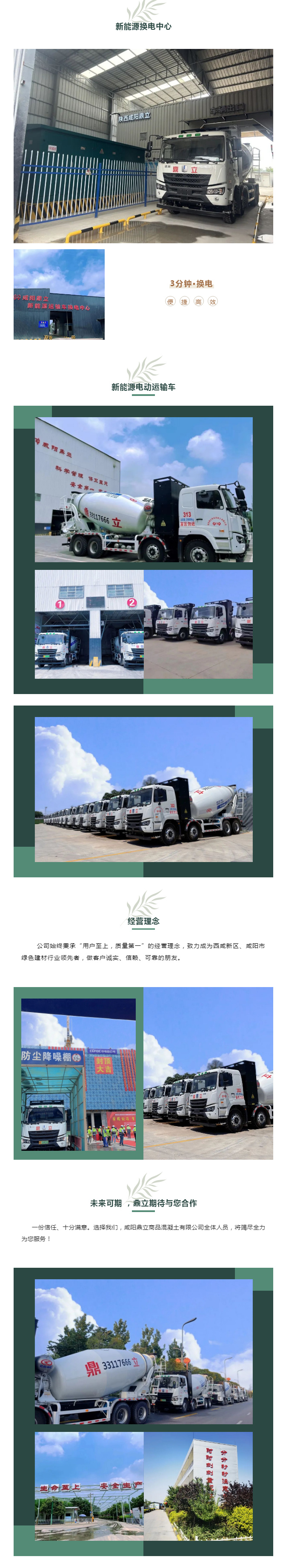 為響應國家“十四五”發展規劃,順應“能源革命”潮流,圍繞“碳達峰、碳中和”目標和“建立健全綠色低碳循環發展經濟體系”國家戰略,建設綠色環保型企業,我公司于2023年3月開始,建設了新能源運輸車換電中心,啟用了新能源電動攪拌運輸車40余輛,加上之前使用的2臺電動裝載機,使整個生產區域達到綠色、環保、低碳、零排放標準。